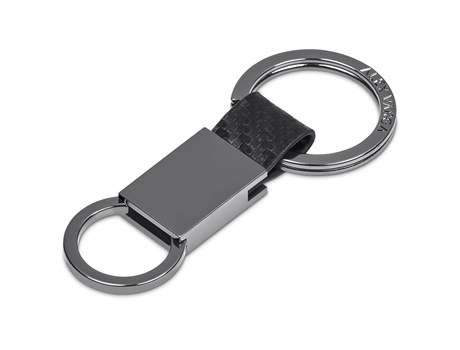 A carbon fibre-look PU is combined with gun metal finish zinc alloy parts to create this stylish keyholder. Consider pairing it with other items from the Alex Varga Lagarna collection.