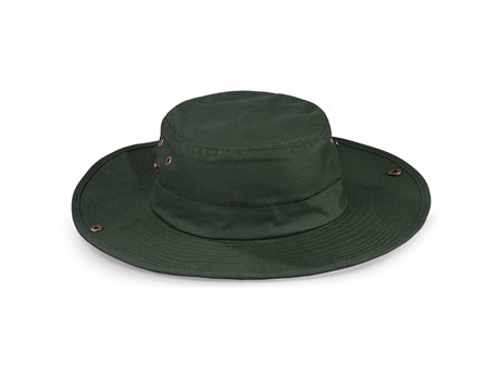 Unstructured. 4 rows stitched sweatband. Metal eyelets. Brass studs. Self-fabric cord.
