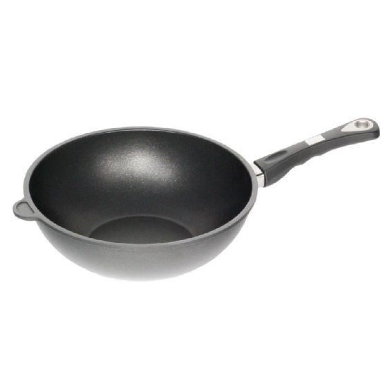 The AMT WOK pan has a removable handle, which takes up less space and provides more safety when cooking.