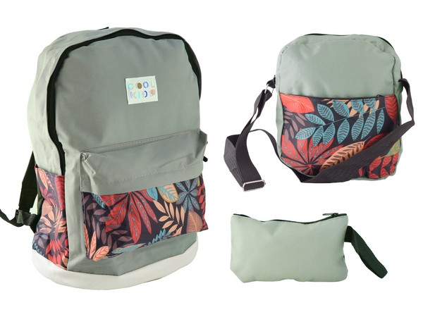 This amazing 3-Piece Backpack Set consists of a large Backpack, a Sling Bag and a Pencil Case. The Backpack comes with a large padded, nylon lined main compartment, with a laptop/iPad compartment and external USB charging port. It has a front floral leaf design zippered compartment and 2 side pockets that can be used to carry water bottles and other small accessories. It also has a white leatherette striped design at the base of the bag and comes with adjustable shoulder straps that are padded for comfort. The Sling Bag has 1 main zippered compartment, a front floral leaf design zippered compartment and an adjustable strap. The Pencil Case has a zippered compartment and carry strap. The bags are ideal for school, overnight, weekend away, a travel bag and so on