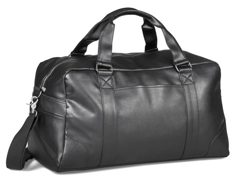 Weekend away in style with this soft and durable PU overnight bag with silver trims. This timeless and popular design has detachable shoulder strap with a front pocket.