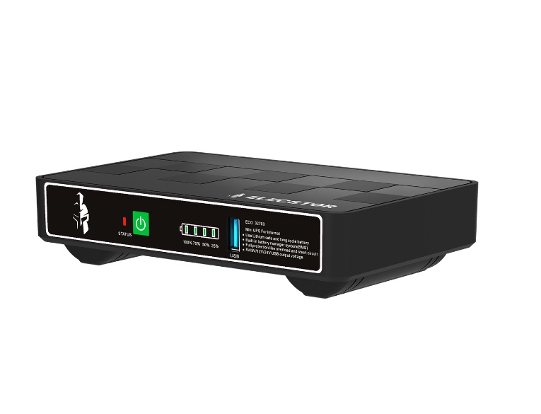 Elecstor 18W Mini DC UPS 12000mAh – 38WH will power your router and fibre box during power outages. Lasts between 3-5 hours.