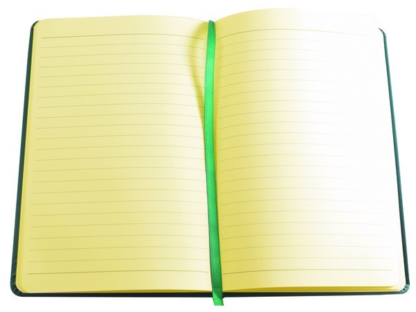 With elastic binder and satin bookmark. 80 Sheets (160 yellow lined pages)