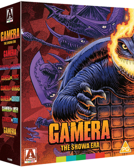 Buried under the Arctic ice for several millenia, the colossal chelonian is unleashed upon Japan, leaving havoc in his wake. After becoming an unexpected box office sensation, Gamera returned several more times, leaping to the world s defence against a motley assortment of evil creatures, from the death-ray-shooting flying terror Gyaos, to the knife-headed alien menace Guiron, to the underwater invader Zigra!