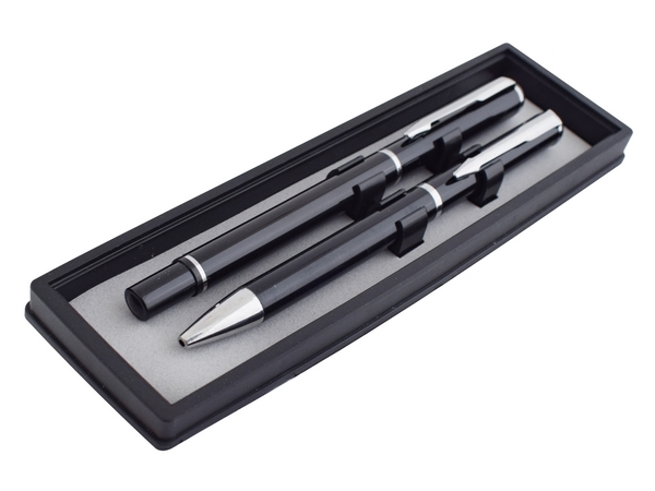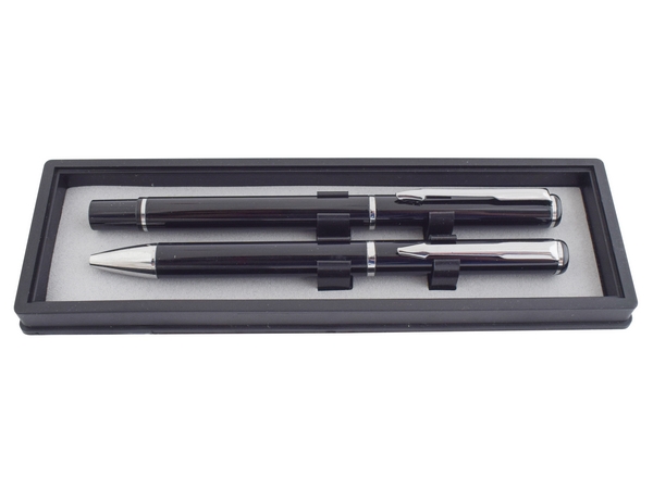 Experience the fluid elegance of writing with the Roller Ball & Ballpoint Pen Set, where craftsmanship meets comfort for a truly distinguished scribbling adventure. With Black German Ink.
