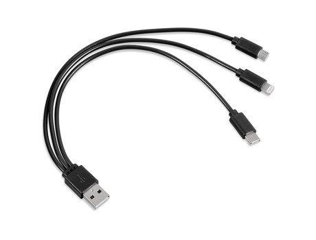 Hat-Trick 3-In-1 Charging Cable – black (Tech-5219)