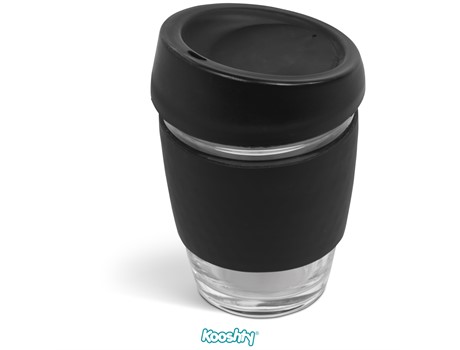The Kooshty Kup Original, with its colourful silicone lid and grip band, is a fun and practical glass cup for the home or the office, and is ideal for coffee on the go, fitting comfortably inside your vehicle’s cup holder.