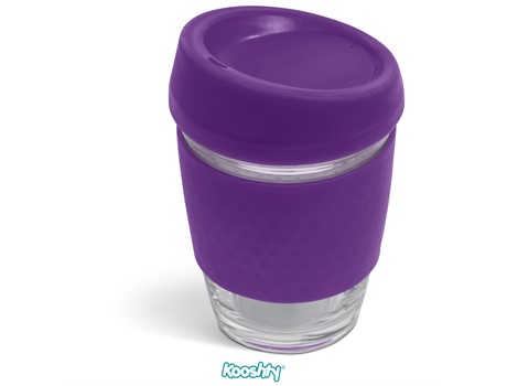 The Kooshty Kup Original, with its colourful silicone lid and grip band, is a fun and practical glass cup for the home or the office, and is ideal for coffee on the go, fitting comfortably inside your vehicle’s cup holder.