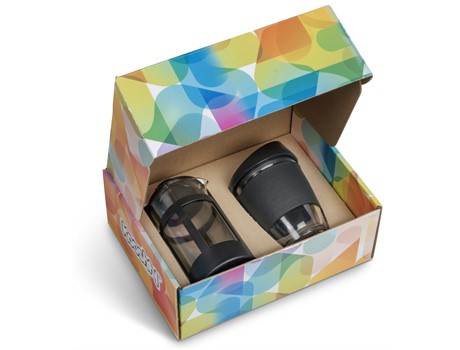 This set contains a 350ml borosilicate glass coffee plunger and a 340ml Kooshty Kup, packaged in a refreshingly bright and cheerful gift box.