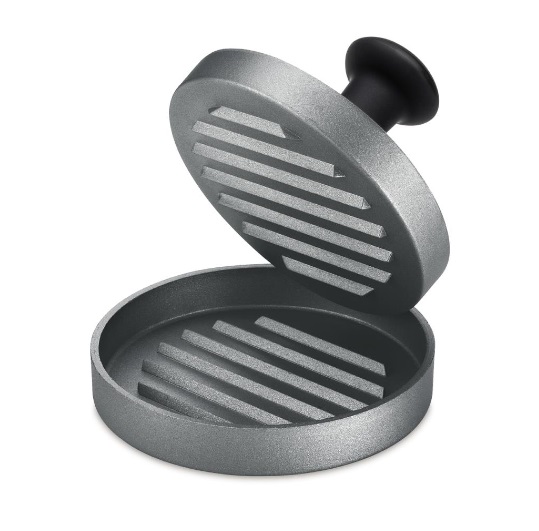 For quick and easy forming of hamburger patties. The uniform compact patties will have perfect grill marks and create a seared effect when cooked. Made from sturdy aluminium with a non-stick coating, the patties release easily from the mould, and the press is easy to hand wash after use.