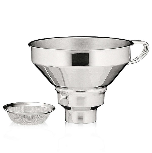 Stainless steel Jam Funnel with removable Sieve insert for the practical and easy jarring of jams, dishwasher safe.