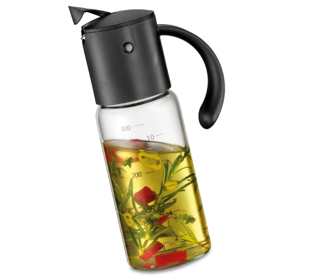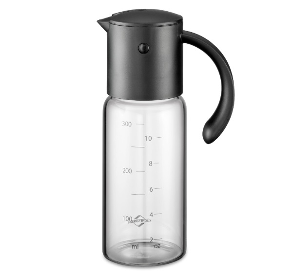 The Kuechenprofi vinegar/oil dispenser MODENA ensures that you always have the kitchen basics at hand. Its tilting mechanism allows for drip-free pouring, the scale in milliliters and ounces comes in handy if you want to make a vinaigrette. The lid can be removed for easy cleaning. Width: 10.5 cm Height: 18.5 cm : 6.5 cm Content: 0.3 ltr. Weight: 0.261 kg Material: Borosilicate glass & High Quality Plastic