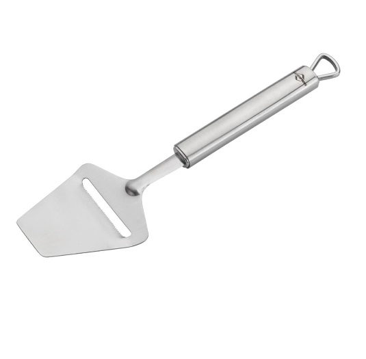 This is great for semi-hard cheeses, like cheddar, and hard cheeses, like Parmesan. Simply glide through with the sharp blade to make thick or thin slices and even parmesan shavings for pasta. The ergonomic, triangular-shaped handle ensures a steady, comfortable grip; an eyelet at the top lets it be hung with the other utensils.