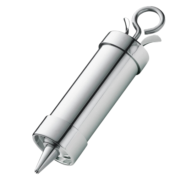This top of the line product comes with multiple attachments and is used for decorating and garnishing tarts and cakes. This piping syringe has a 200 ml filling capacity, is easy to use and easy to clean.