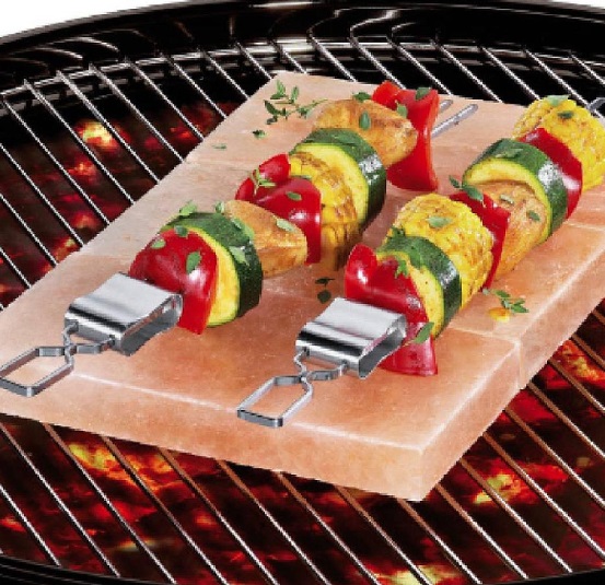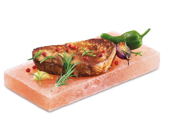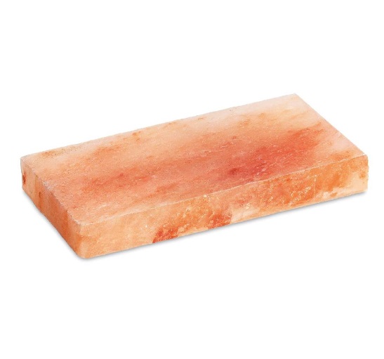 Natural Salt Block for Braai 10x20x2.5cm. Made of 100% Pakistani spice salt. Salt block can be used to cook or serve cold food. For grilling, frying and serving.