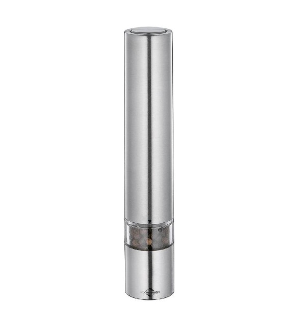 The Kuechenprofi Electric Pepper & Salt mills have a grinder made from high-tech ceramics. One can adjust the screw for fine or coarse grinding and grind salt, pepper or other spices with the simple press of a button. 4 x AAA batteries are included, the grinders already come filled with salt or pepper and the grinding mechanism has a 10-year warranty.