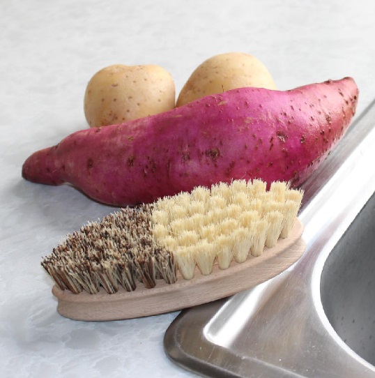Eco-friendly vegetable brush made from beech wood with natural bristles.