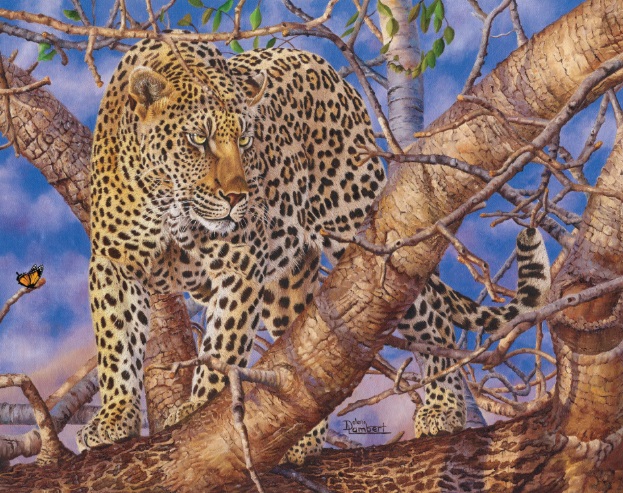 Enjoy building this inspiring wildlife puzzle of a Leopard in a tree gazing over the savannah. Painted by local artist Dalene Lambert.
