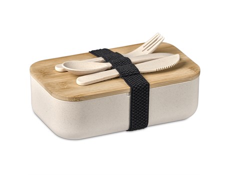 Make your next meal on the go a healthier one – for you and for the environment. This generously-sized set consists of a cotton lunch cooler with aluminium foil lining, a wheat straw lunch box with a bamboo lid, and a wheat straw knife, fork and spoon.