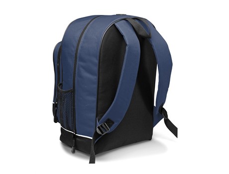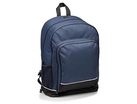 Spacious main zippered compartment. Front sizeable zippered pocket . Side mesh water bottle pocket. Earbud outlet. Adjustable shoulder straps. Top grab handle. 600D. 28.5 (w) x 17 (d) x 42 (h)