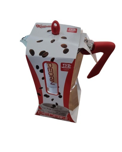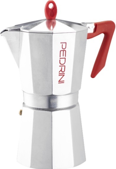 Pedrini Coffee Maker: Polished Aluminium 12 Cups – Red (9086-0)