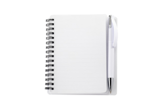 A6 spiral bound notebook with 80 sheets of lined paper. Includes Plasma pen (item 2345).