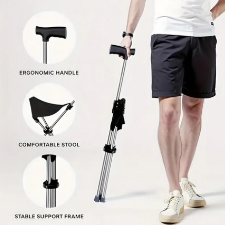 This lightweight chair doubles as a walking cane and a sturdy seat. Compact and foldable, it measures just 86cm high when stored, making it easy to carry anywhere. Unfold it for a comfortable seat with a weight capacity of up to 90 kg. Your compact seating solution on-the-go.