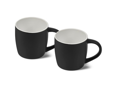 The upmarket matte finish on these 280ml coffee mugs gives them a warm feeling. Laser Engraving removes the black surface to reveal the ceramic below. This is a subtle, elegant branding method and provides longevity for the logo or message being branded, as it will never come off or fade away. This set combines 2 matching mugs in a grey gift box.