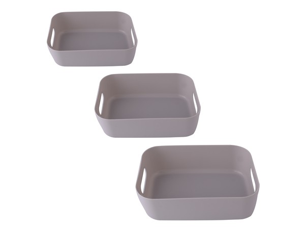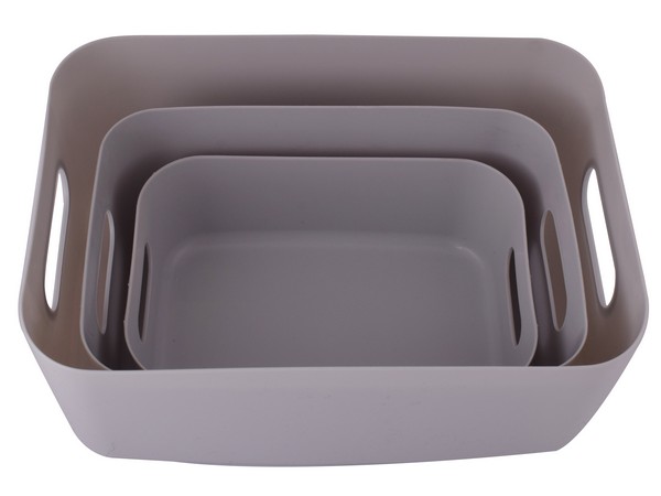 3-Piece multipurpose storage boxes for your bedroom, bathroom, laundry room, kitchen pantry, college dorm or office. These storage boxes are a perfect solution for keeping any area tidy and neat. MORE STORAGE, LESS TROUBLE. TIME TO GET ORGANISED. Sizes: Small: 20.5 (l) x 14.5 (w) x 7 (d) / Medium: 24 (l) x 16.5 (w) x 10 (d) / Large: 29 (l) x 21 (w) x 12 (d)