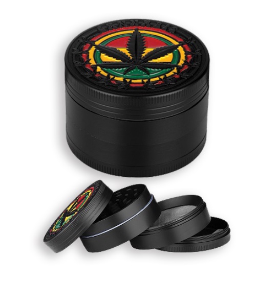 TOBACCO GRINDER – 4 PART BLACK LEAF 50MM – 340004