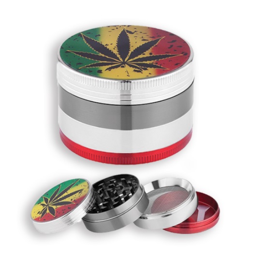 Tobacco Grinder – 4 Part Rasta Leaf 50mm (TBGR041)