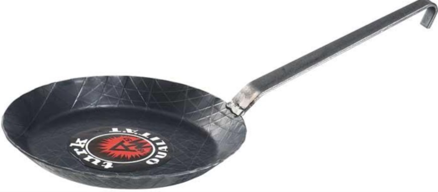 This heavy pan with a spot-welded hook handle is particularly comfortable to hold. The rustic design impresses with its appearance and functionality. The surface is both scratch- and cut-resistant. The excellent heat behavior ensures that all dishes turn out perfectly. With frequent use, the pan acquires a patina that makes the frying results better over time. The wrought iron pan is suitable for open grill fires and all types of stoves. A loyal companion that you can enjoy for many years!