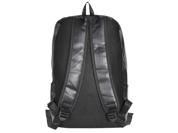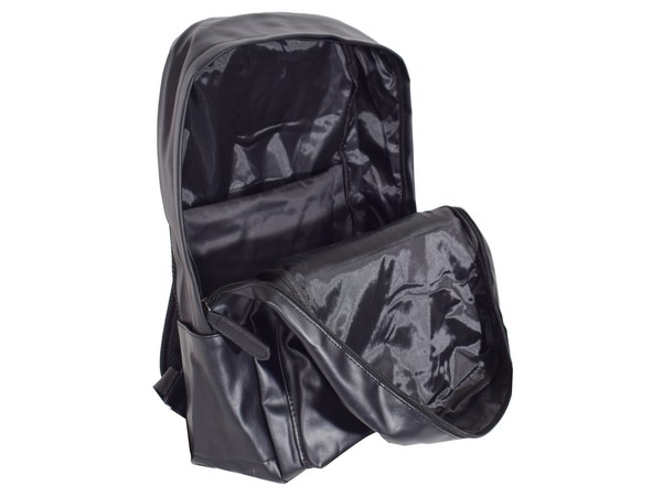 Vegan Friendly. With Main Padded Zip Compartment and Inner Laptop Pouch, Top and Front Zip Pocket and 2 Side Pouches to hold water bottles. With Carry Handle and Padded Adjustable Shoulder Strap
