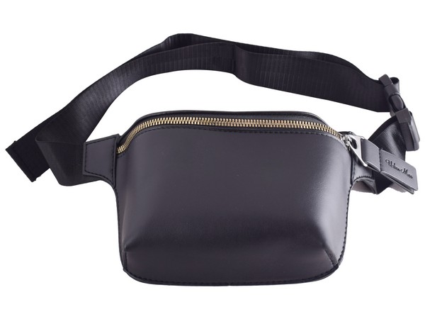 With 1 x zip compartment and adjustable waist strap. PU pouch with smooth black inner lining, gold zip with black PU zip puller