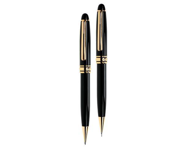 Vintage Ballpen/Pencil Set Brand by Laser Engraving Black/Gold Trim