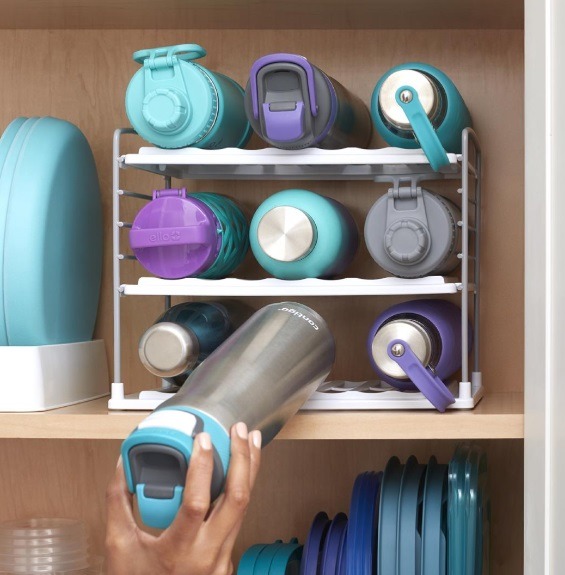 With horizontal presentation, your water bottles become visible for easy access. Nor will you have to dig through your cupboard just to get your preferred water bottle that’s behind everything else. This bottle organizer with adjustable lets you can choose the right clearance height for water bottles, baby bottles and travel mugs, making this a great bottle organizer for crowded cabinets. It’s sturdy enough to hold all your bottles and durable enough to last through years of “new year new you” resolutions.