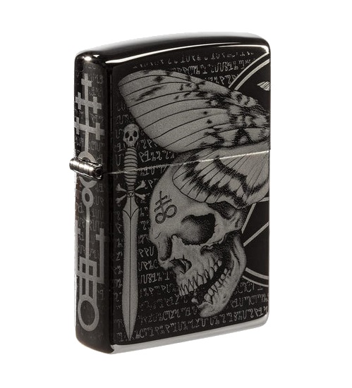 Zippo Lighter – Reg Ebony Hawkmoth Design – RANGE
